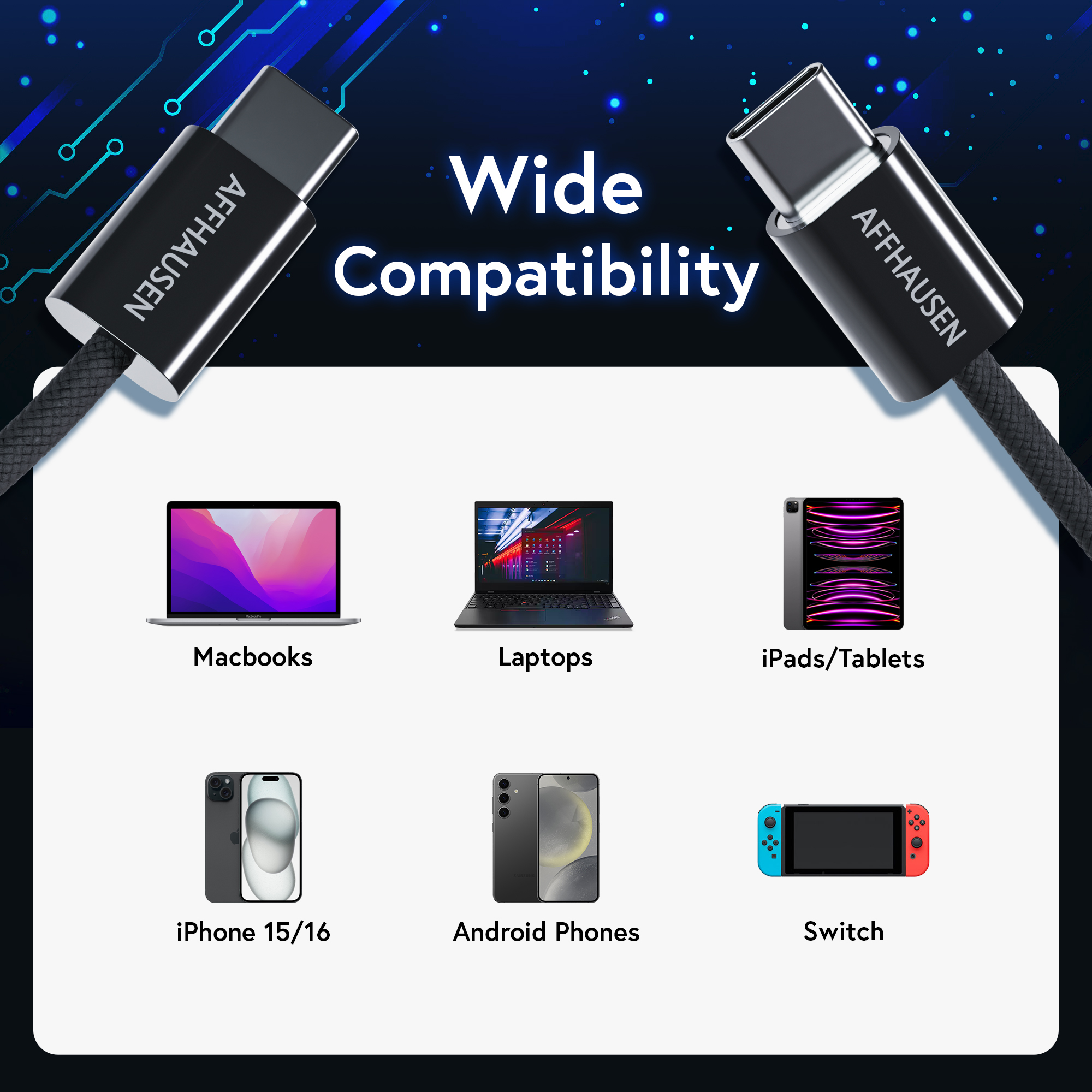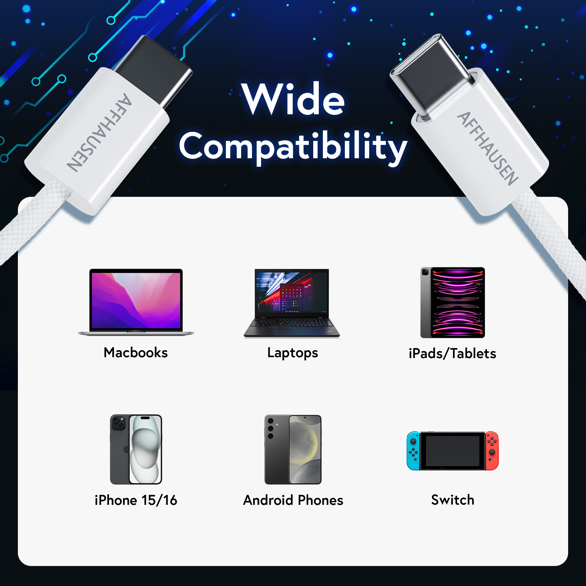 such as laptops, smartphones, and tablets. Its braided finish,