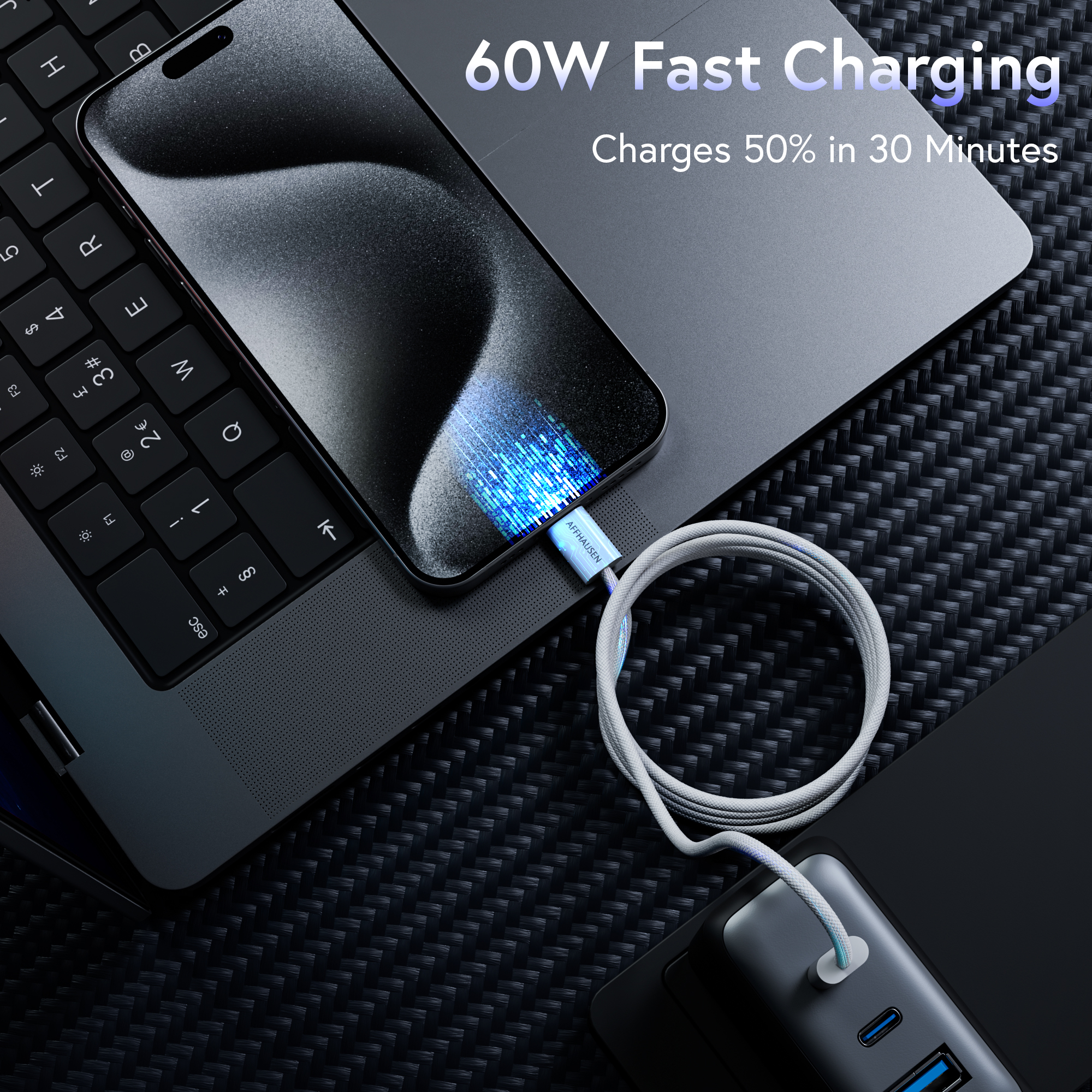 The AFFHAUSEN USB-C 60W Charge Cable with Braided Finish