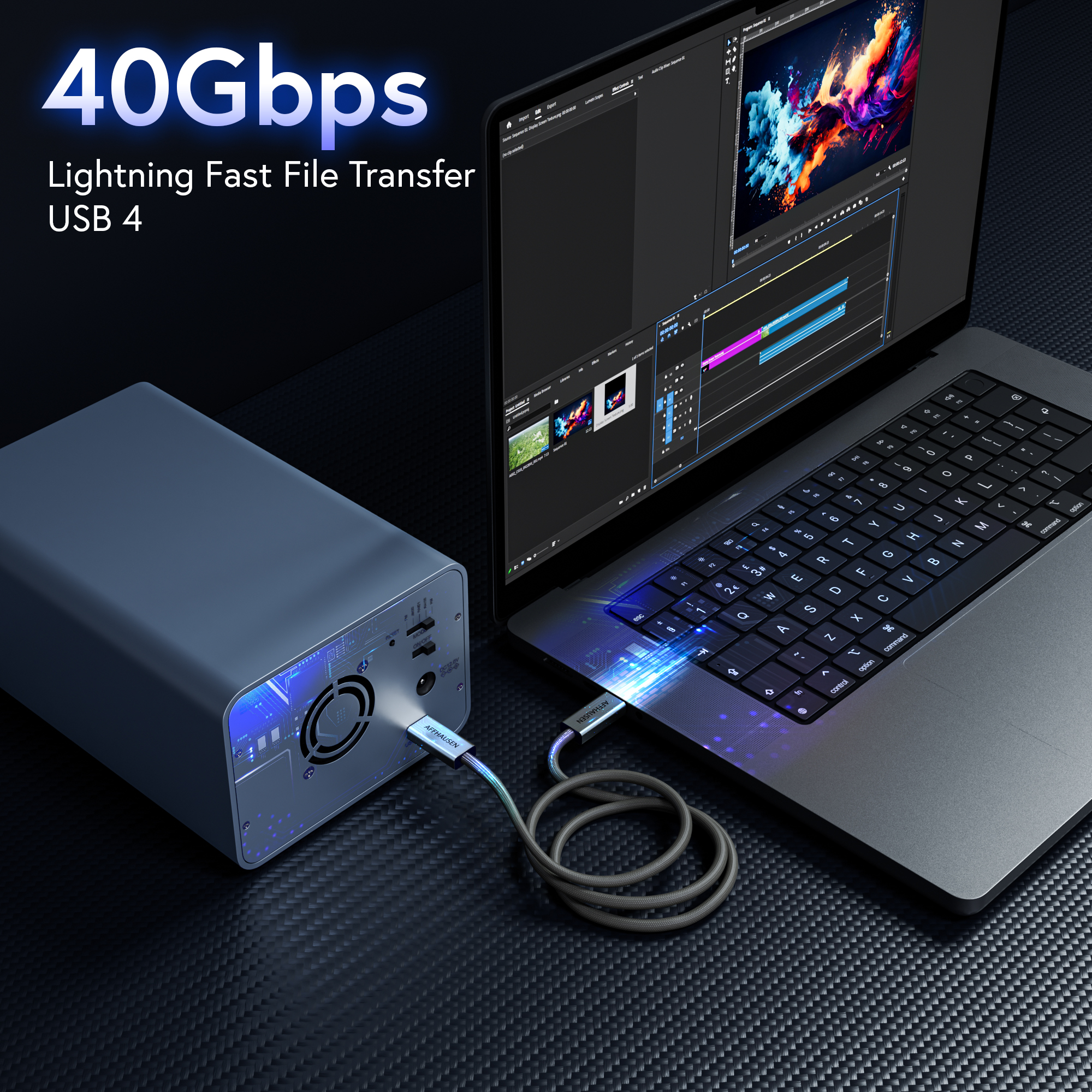 and USB-C 4 devices. With blazing-fast 40Gbps data transfers,