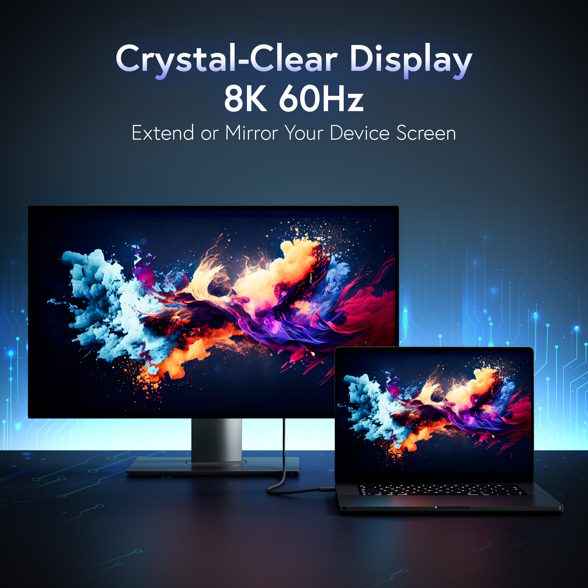 100W Power Delivery charging, and stunning 8K UHD video output at